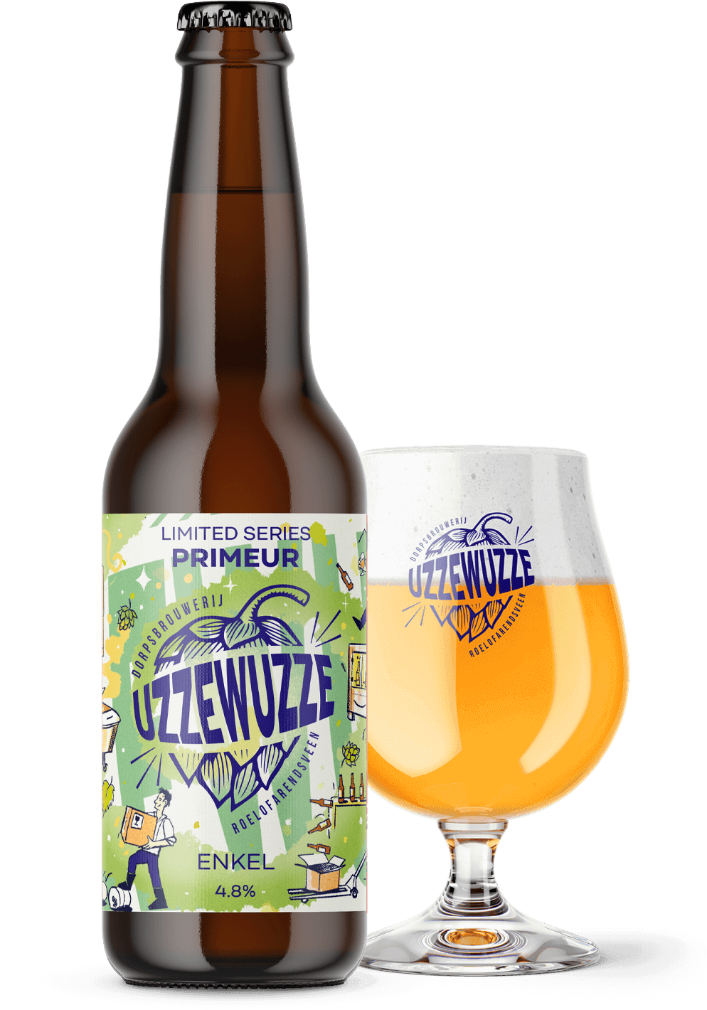 Primeur is het eerste bier uit onze nieuwe brouwerij én ter ere van ons 5-jarig bestaan! Het label voor dit jubileum-bier is ontworpen door illustrator Tom van der Heiden. Herken je ons allemaal?